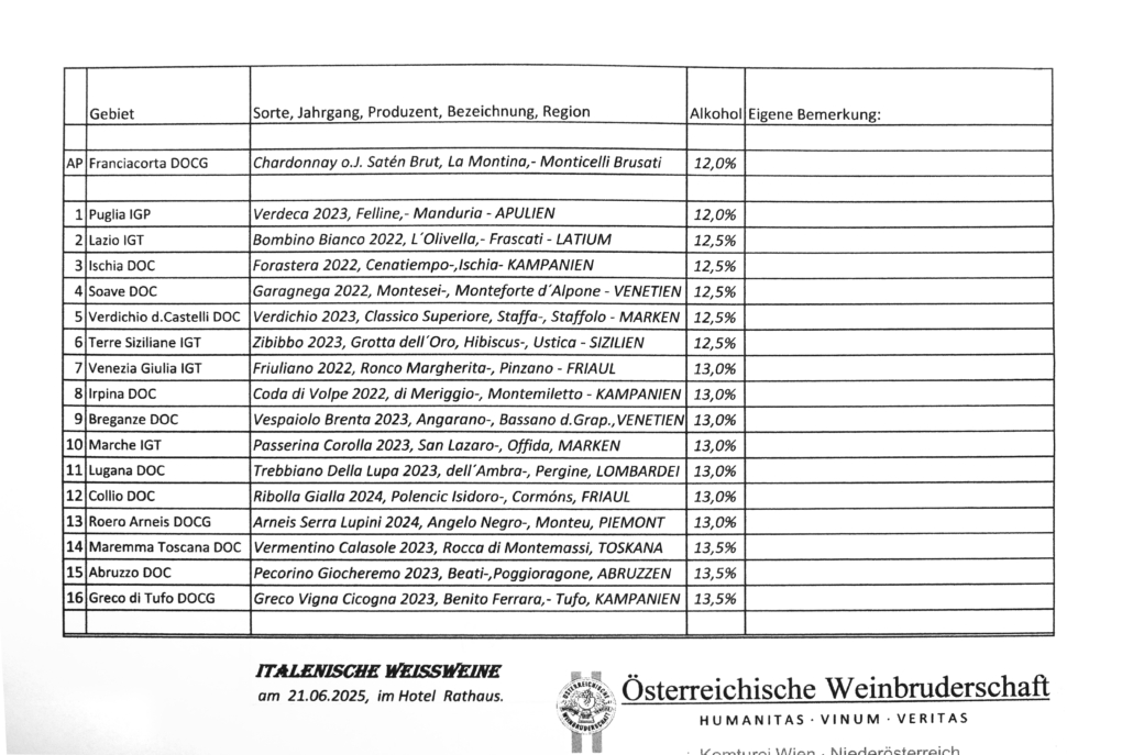 Im Hotel Rathaus Wein und Design trafen sich die Weinbrüder der Komturei Wien – Niederösterreich zur Lehrweinprobe Weißweine aus Italien.