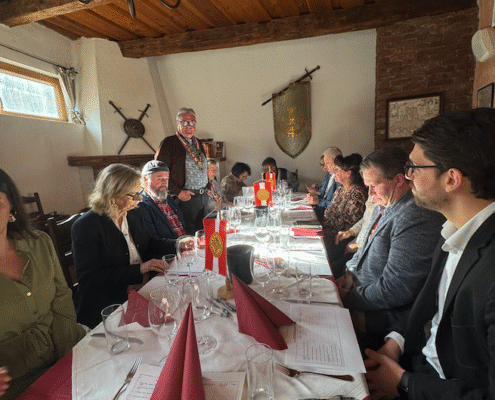 Der Einstieg in den vinophilen Nachmittag war gekennzeichnet von der Wiederaufnahme unseres WB Gottfried Bachler, Präsident Slow Food Kärnten, in die ÖWB/Komturei Kärnten.