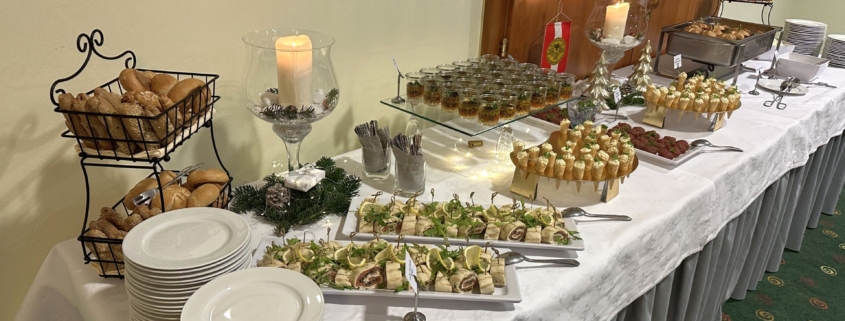 Vorab ein Gläschen Punsch, dann warme Suppen und köstliche Schmankerl vom Buffet werden geboten, begleitet von einer Auswahl an aktuellen Weinen unserer Weinbrüder.
